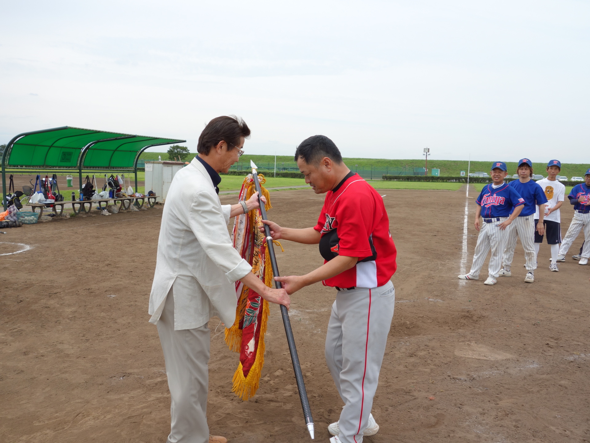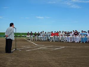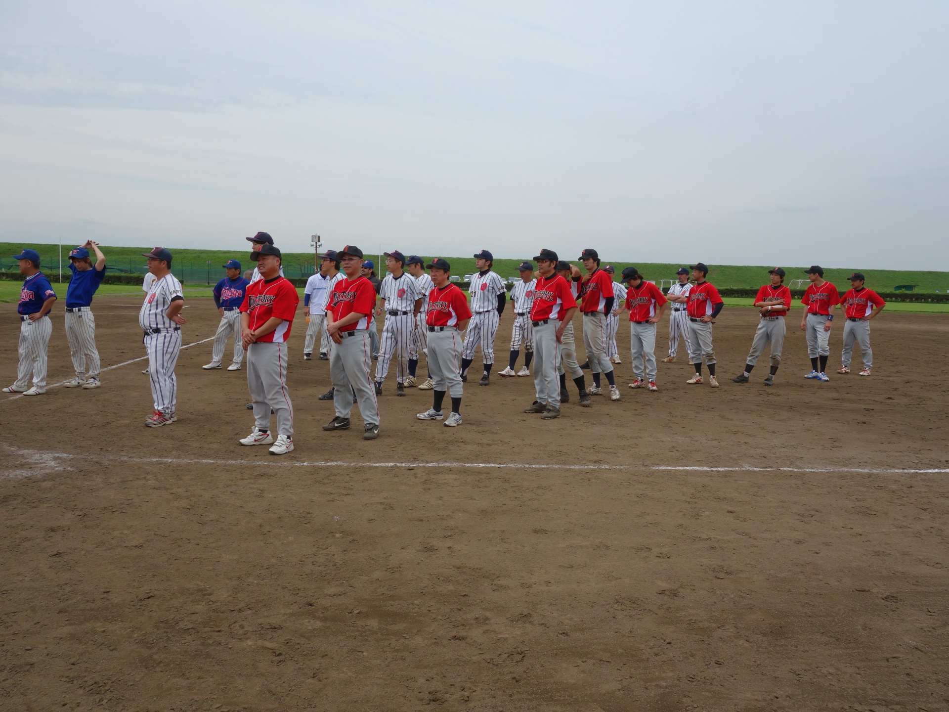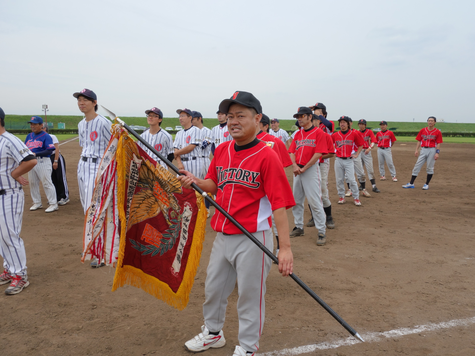 8月26日、荒川総合運動公園野球場にて、 第51回埼玉県理容生活衛生同業組合 野球大会の開会式が行われました。 大会制覇に向けて、与野VICTORY選手一同 頑張りますので、応援の程宜しくお願い致します! |