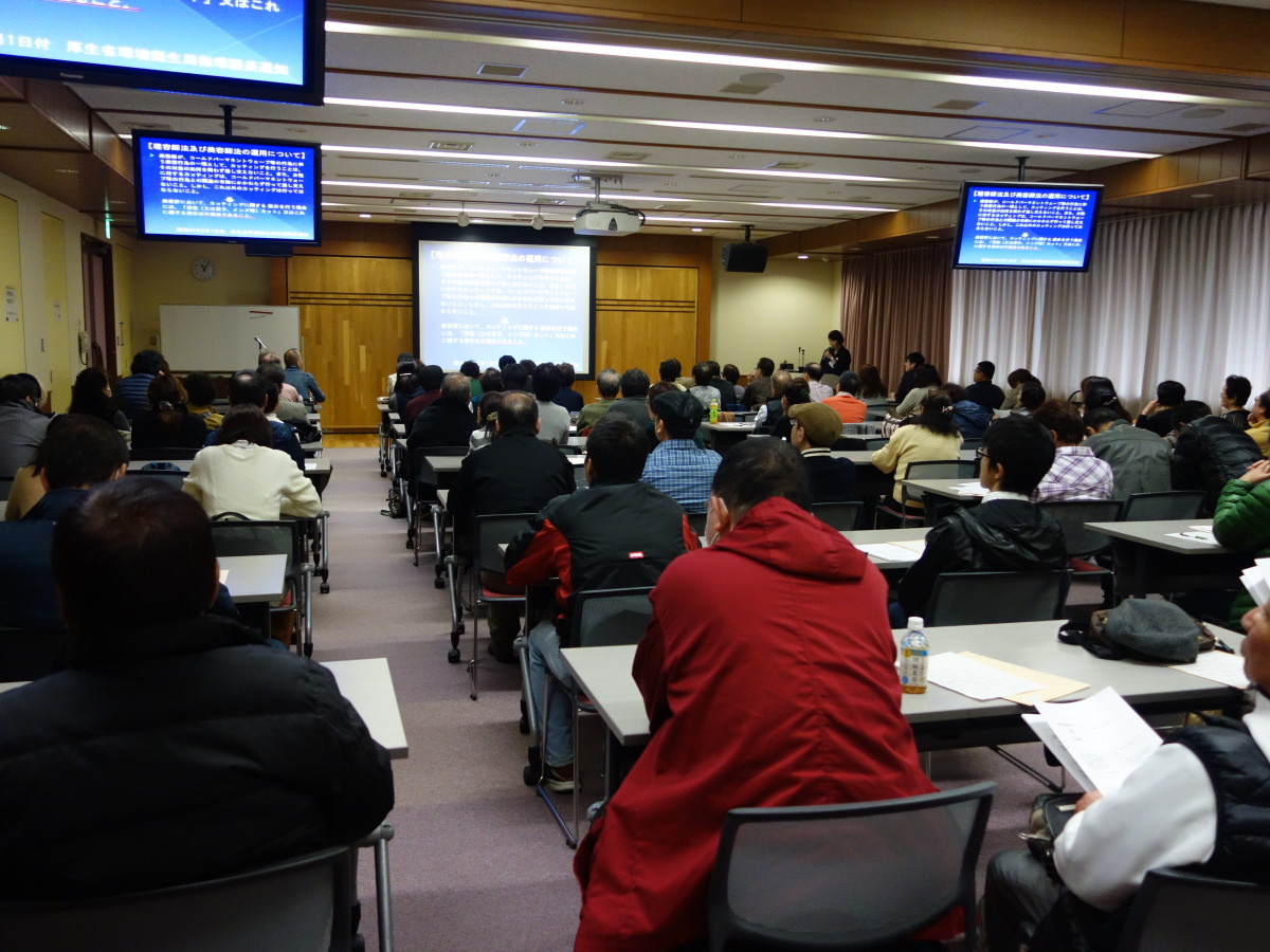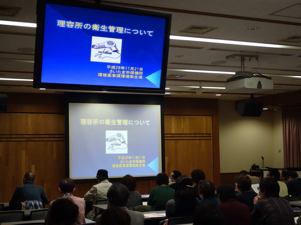 『理容所の衛生管理について』 さいたま市保健所 環境薬事課 環境衛生係 主任 八坂祐香合講師 出席数:81名 内容:『最近の法改正などについて』 『出張理容について』 『アタマジラミについて』 『器具の消毒について』