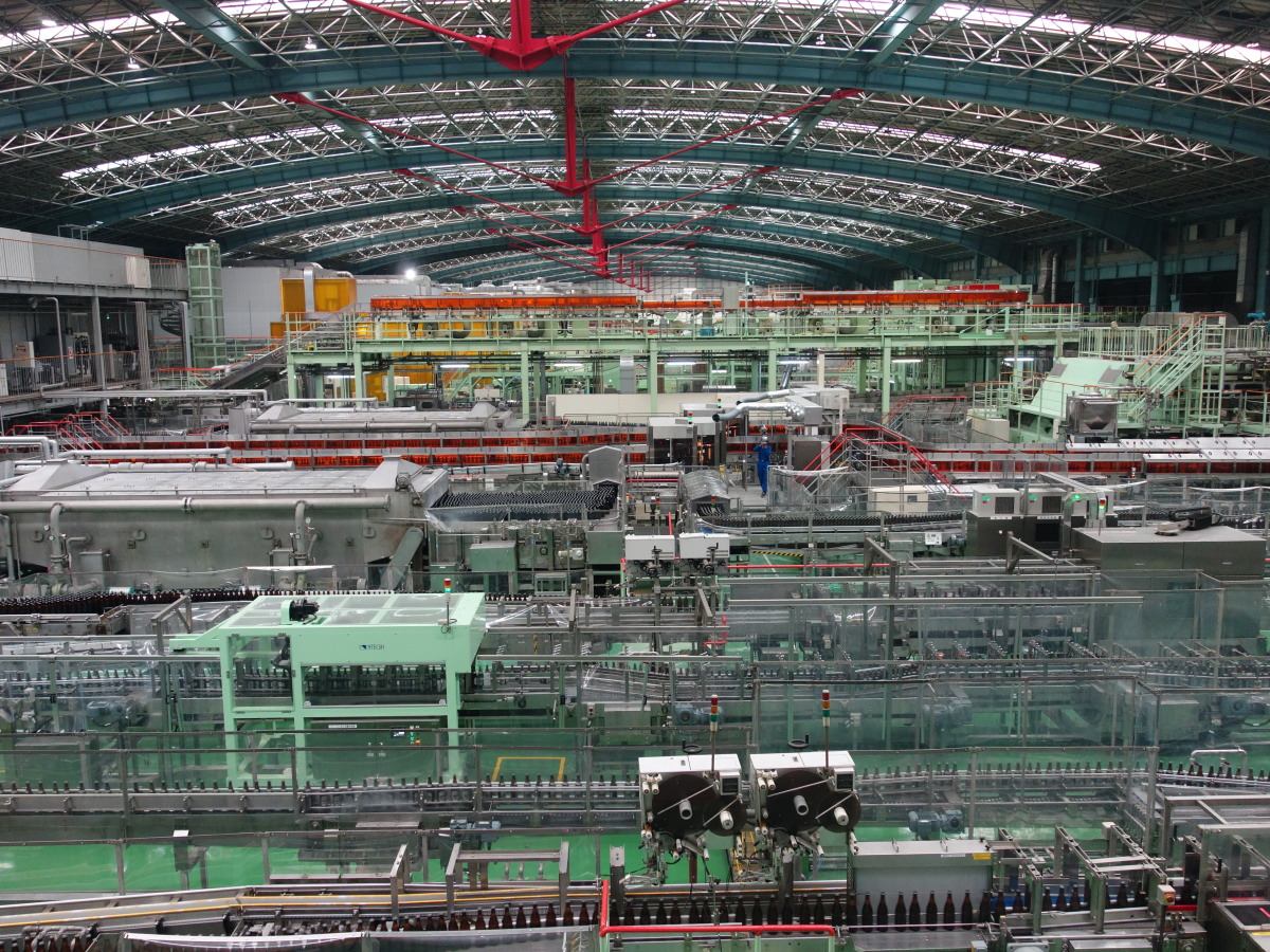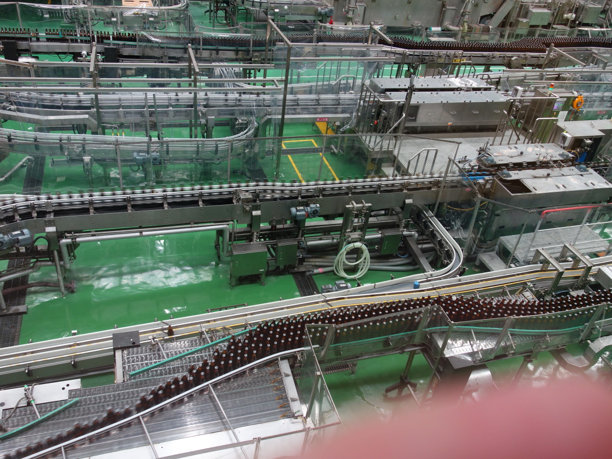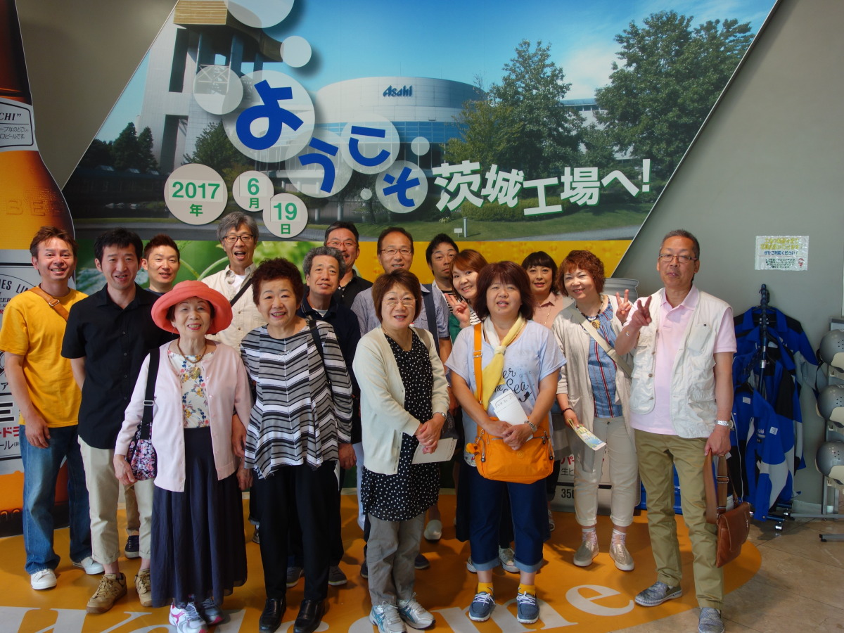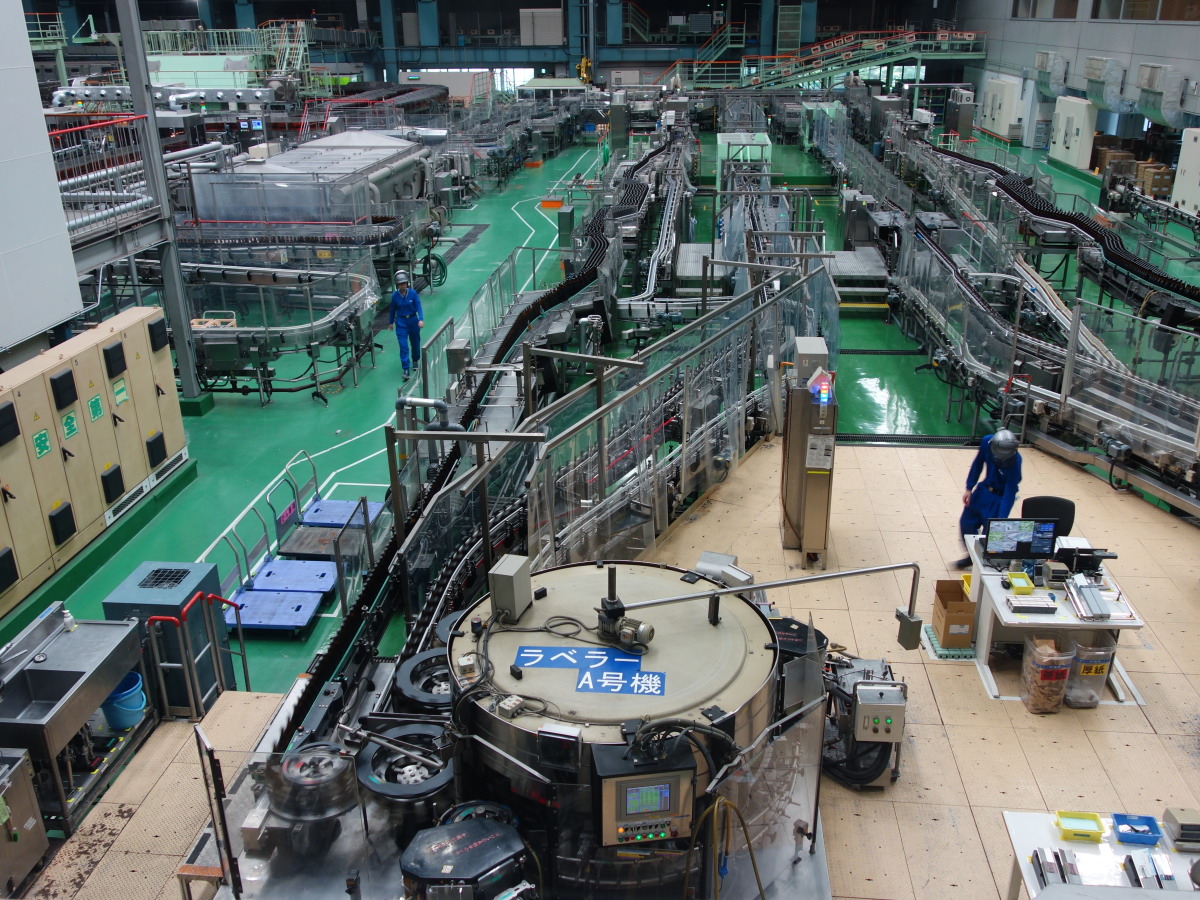 最初の目的地は守谷・アサヒビール工場の見学です。このアサヒビール茨城工場は東京ドーム9個分の敷地で、ビールだけでなく清涼飲料水の作られる日本最大級の工場です。