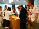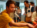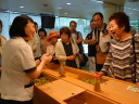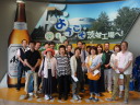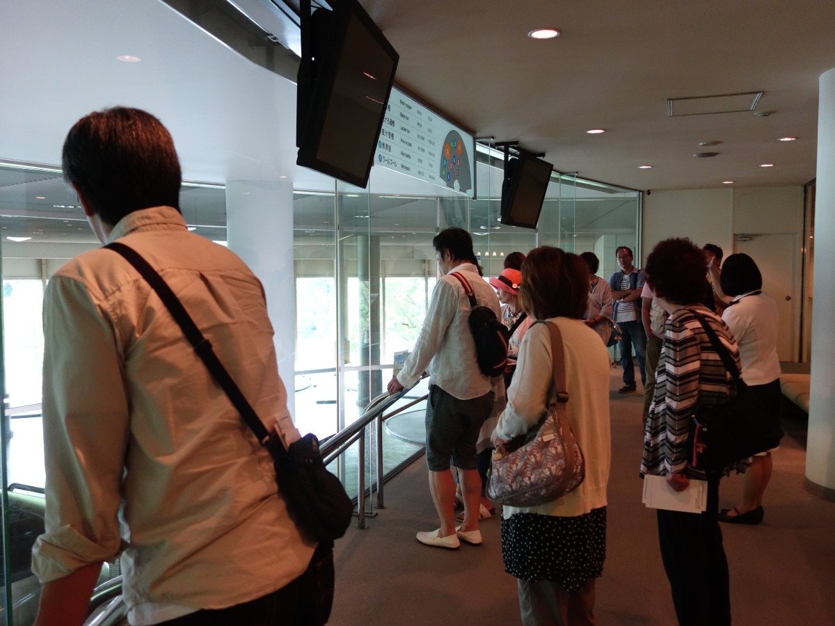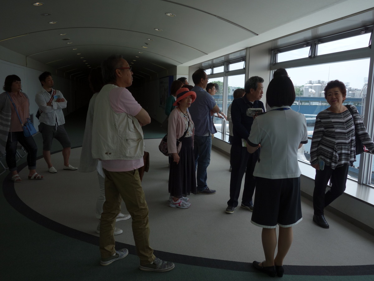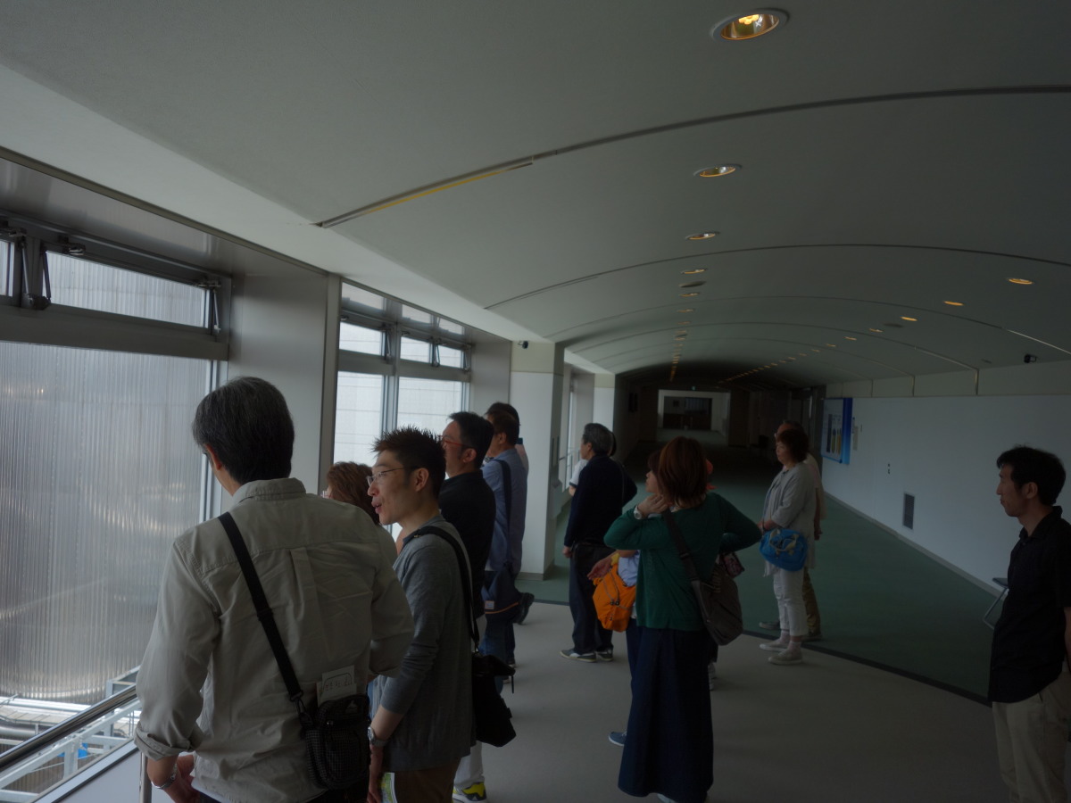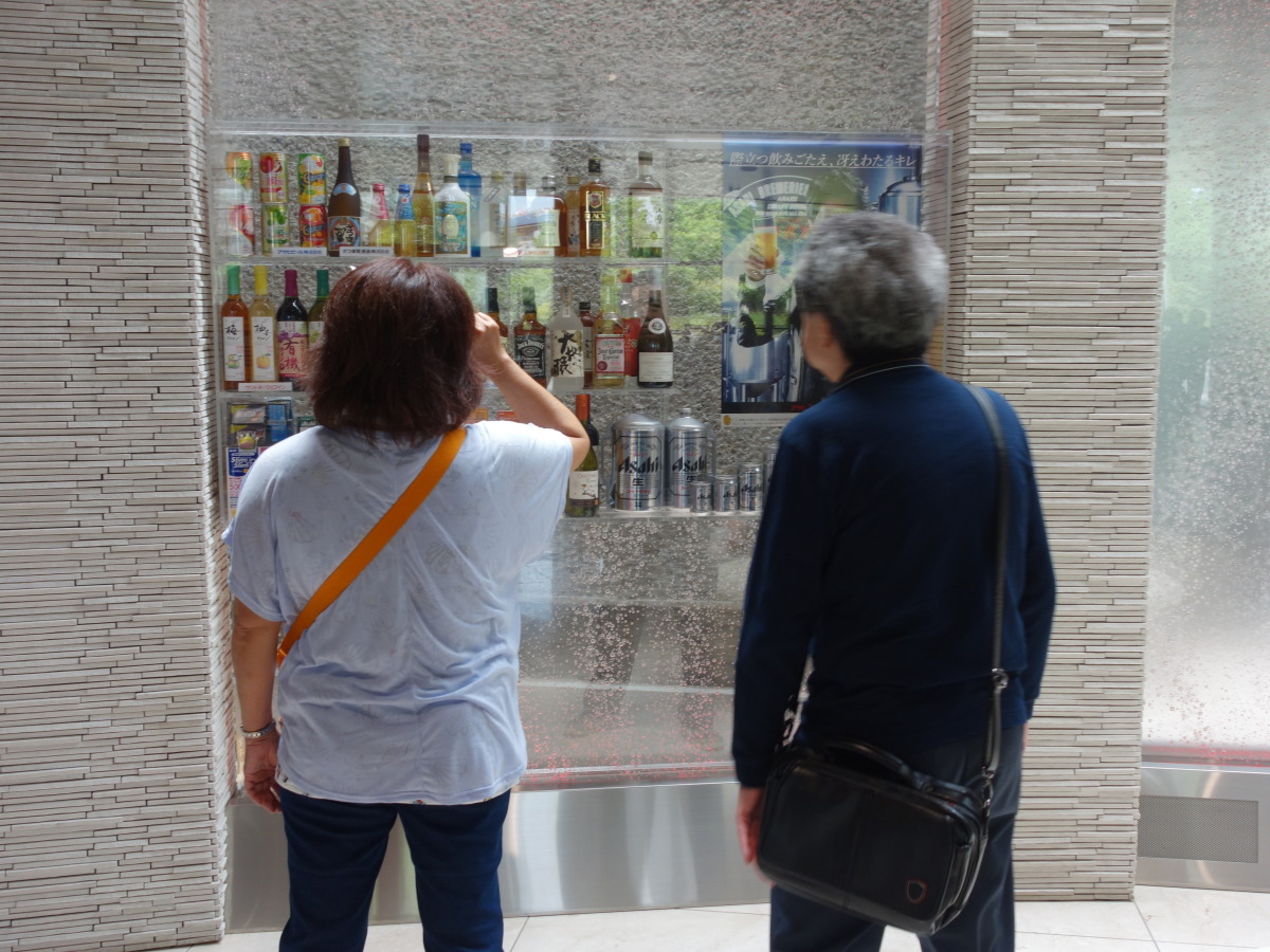 工場見学の最後は、地上60メートルの展望会場で出来立てビールの試飲です。お昼前に皆さんほろ酔いでいい気分になっていました。