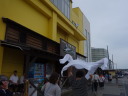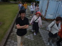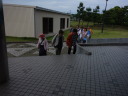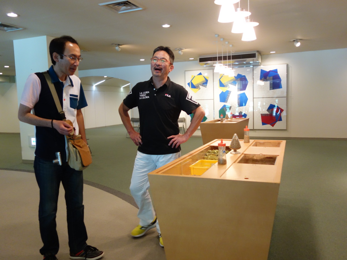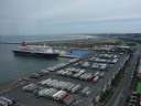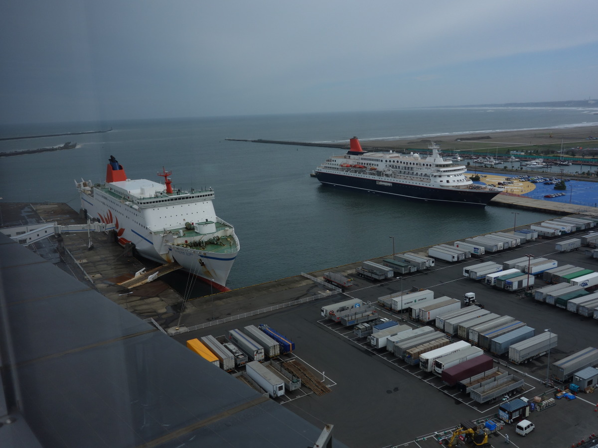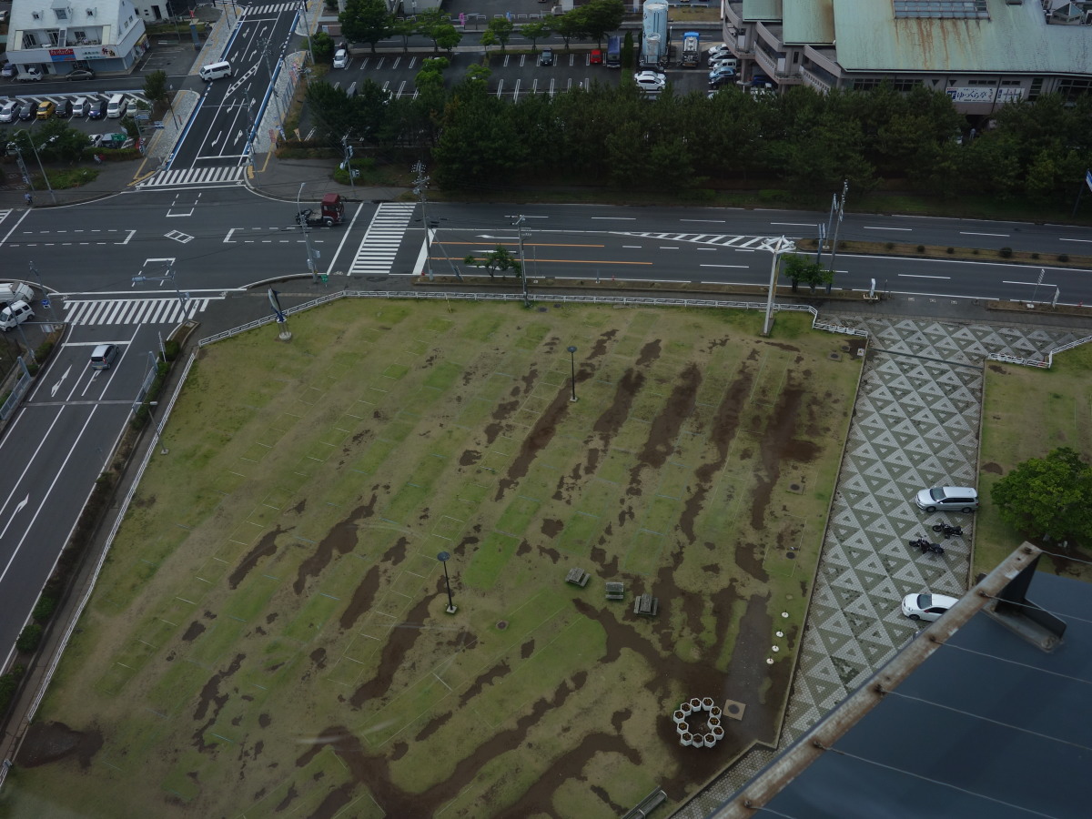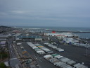 その後、大洗タワーに移動。ここは地上60メートルから太平洋を一望できる展望で有名です。が、当日は梅雨の真っ只中で、雨こそ降っていませんがどんよりと曇り、波も高く防波堤に打ちつける波が高くしぶきを上げていました。