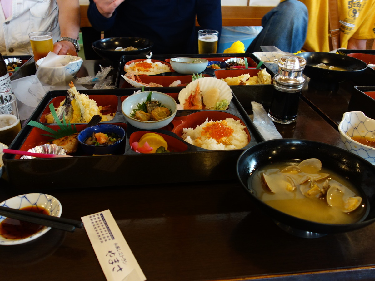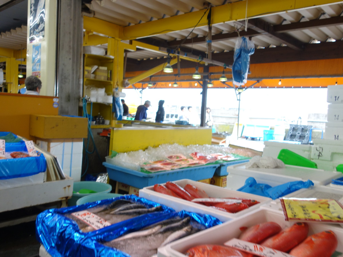 お昼は、那珂湊のヤマサ水産にて海鮮御膳。ビールの影響もあり箸の進みも早い。食事後は食事後の散歩もかねて魚市場にておみやげを物色。