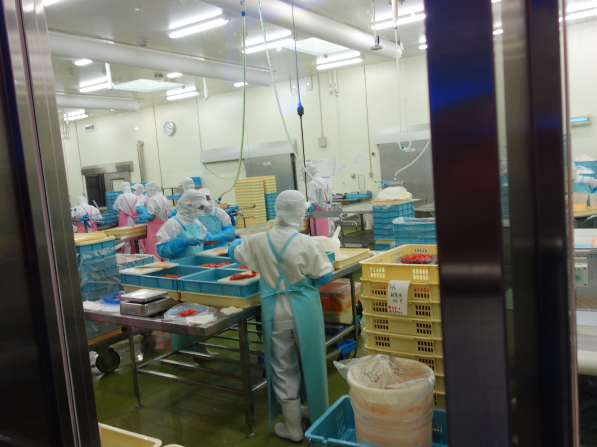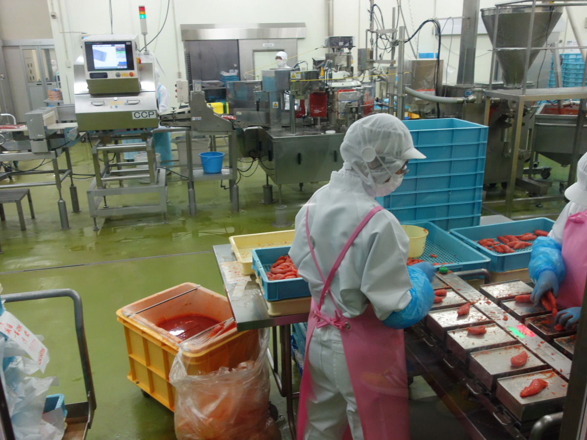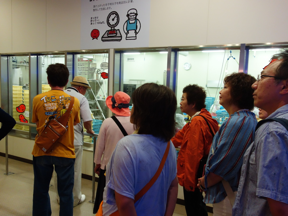 最後にかねふくめんたいパークにて工場見学。できたて明太子は数量限定品のためすでに売り切れとなっており残念。