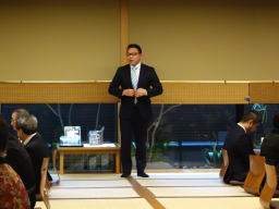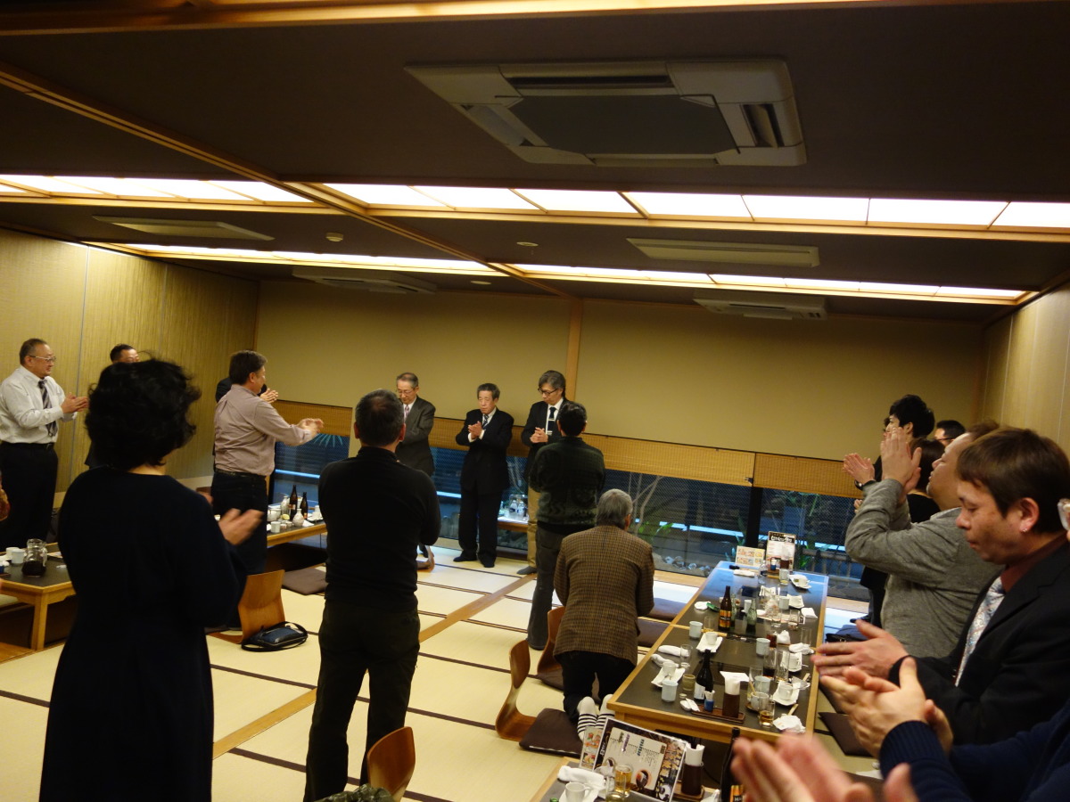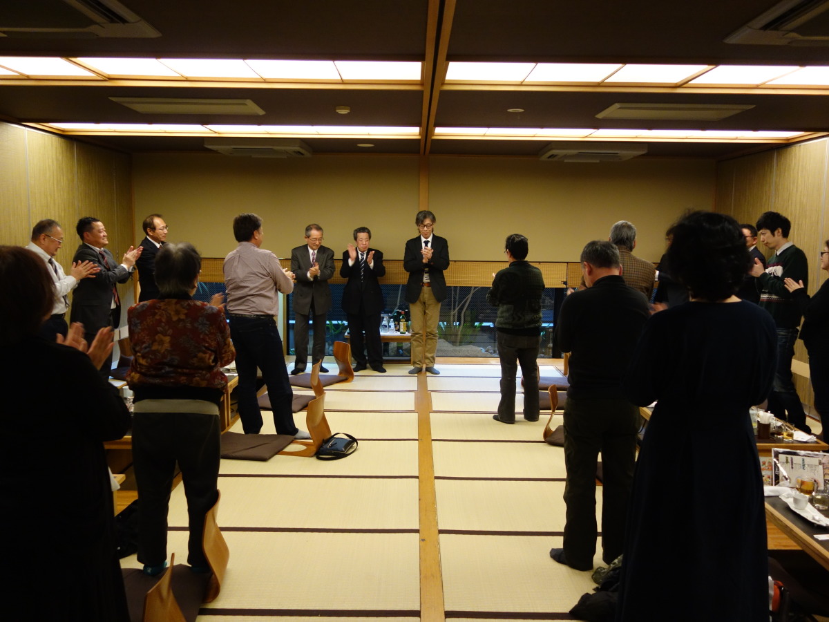 作田支部長の開会のごあいさつの後、ご来賓の皆様のご挨拶を賜り、その後、松尾前支部長の乾杯のご発声にて盛大な宴が始まりました。