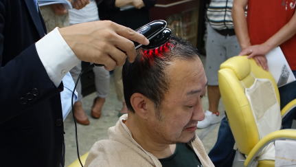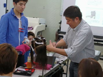 今回の夜間講習は【株式会社 ナンバースリー】によるスカルプケアになります。 クレンジング剤やトニックでマッサージするだけでなく、中・高周波で頭皮に直接働きかける機械を使って施術して頂きます。 |