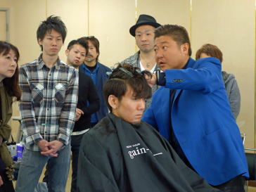 【gain-G】は、20代後半から50代の仕事も遊びもバリバリこなす男性がメインターゲットです 指間刈りやすくい刈りを基本としたヘアデザインとなっています 今回の講師は、2017全理連NEW HAIR設定委員会チーフの駒崎智先生です。 |