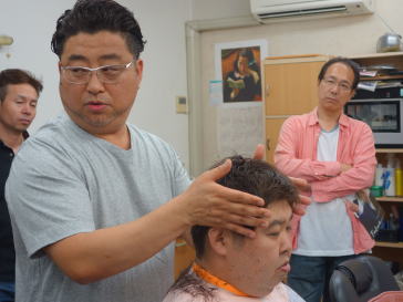 Future... は、生え際が後退してきた幅広い年齢層の男性に対して有効なヘアスタイルです。 今回の講師は、さいたま支部支部員で埼玉県理容組合本部講師でもあり、今年のSaitama Hair Collection設定委員でもある、渡辺信也先生です。 |
