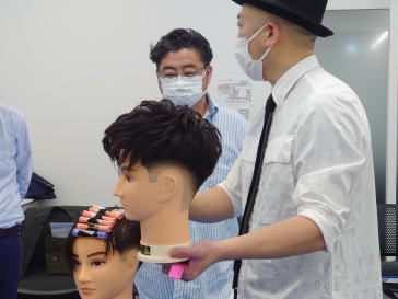 【GIMMICK】とは、『工夫・仕掛け』の意味があります。 ツーブロックカットをメインに、ブロックラインやカットする長さ、被せる髪のアレンジしだいで 様々に変化する様子を、渡邊彰人本部講師に講習して頂きました。 今回のこのテクニカルマニュアルは、お客様にオススメのヘアスタイルとして提案できるものだと思います。 |
