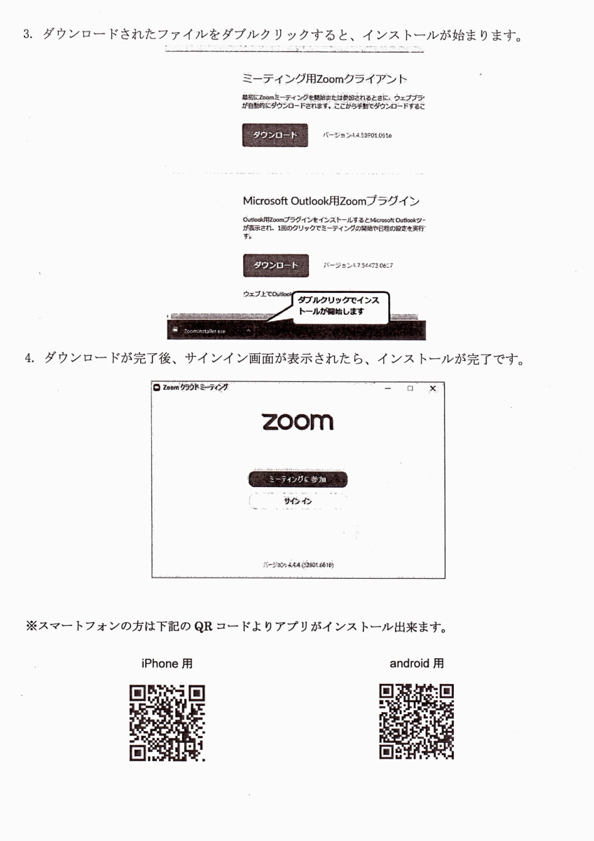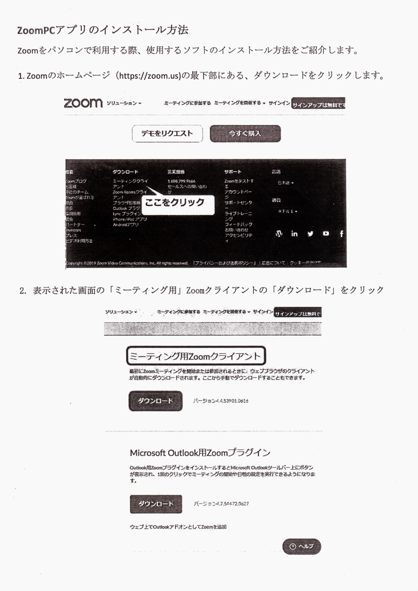 2021年11月の回覧にてZOOMのインストールの仕方や講習会への参加の仕方をご案内しております