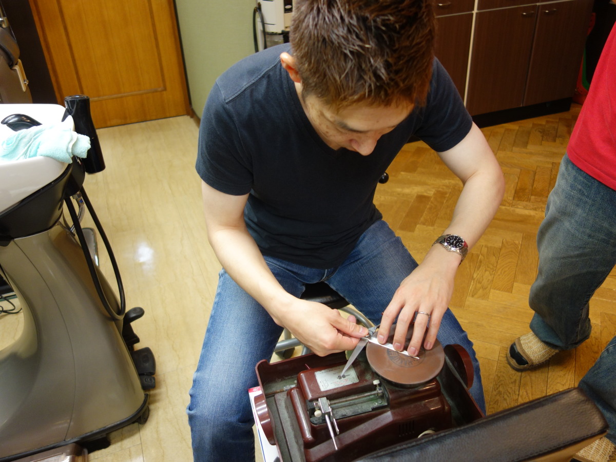 今回は、カットシザース研ぎの基本をからおさらいと、グラインダーでの刃こぼれの調整の勉強しました。